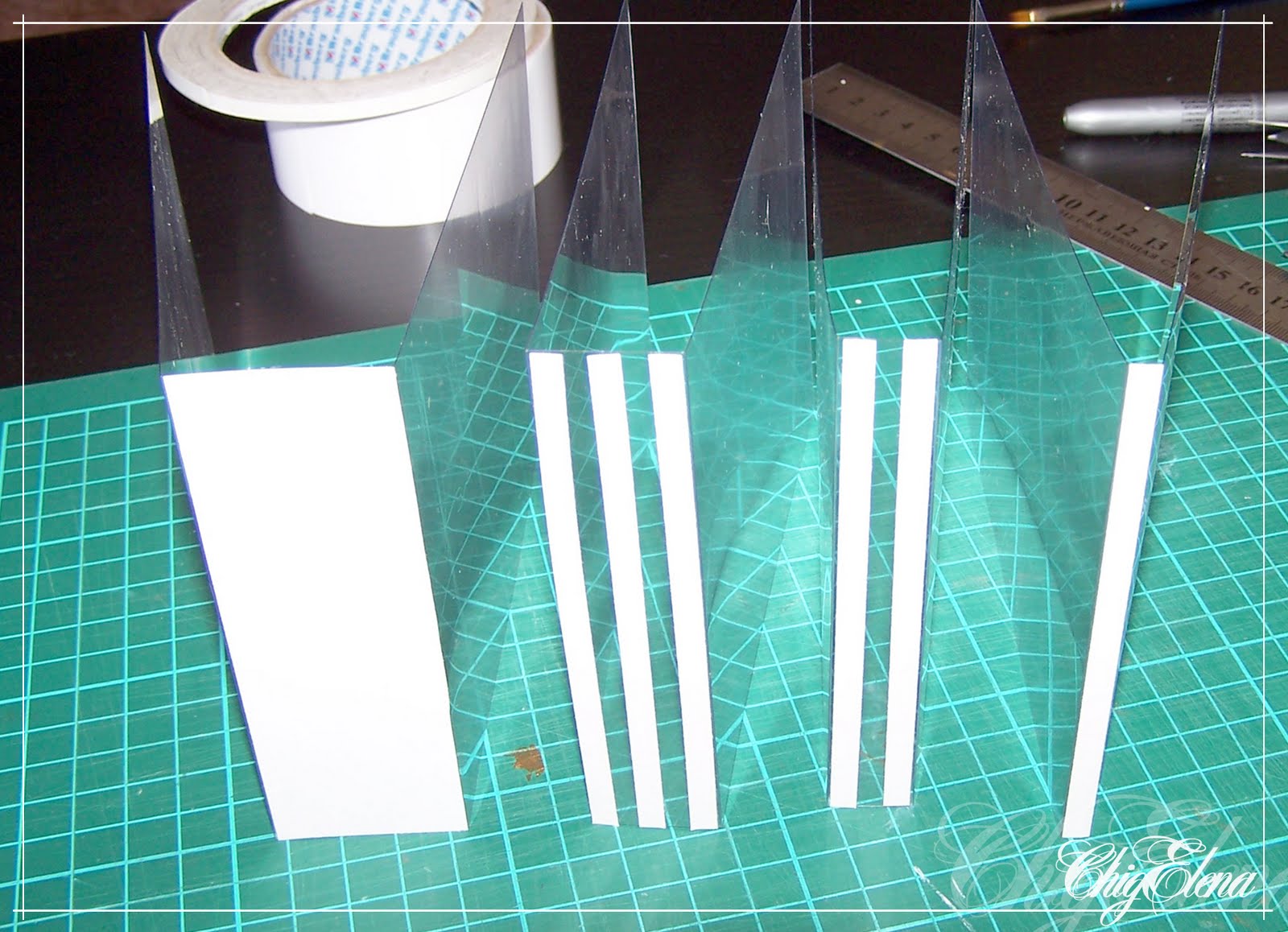 Нарезаем прямоугольники нужного размера. Я использовала подложку, нарезала кусочки 1,5х3,7см. Мне хватило всего двух штучек. Но можно подготовить больше и наклеить их сразу на какую-нибудь твердую основу с помощью двустороннего скотча. Затем, просто штампуем, используя подходящие чернила.